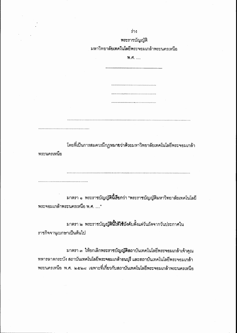 ชื่อเอกสาร :   ร่างพระราชบัญญัติมหาวิทยาลัยเทคโนโลยีพระจอมเกล้าพระนครเหนือ พ.ศ. ....
