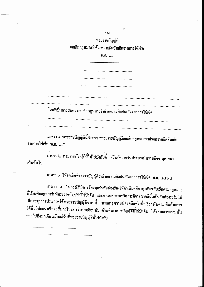 ร่างพระราชบัญญัติยกเลิกกฎหมายว่าด้วยความผิดอันเกิดจากการใช้เช็ค พ.ศ. .... |