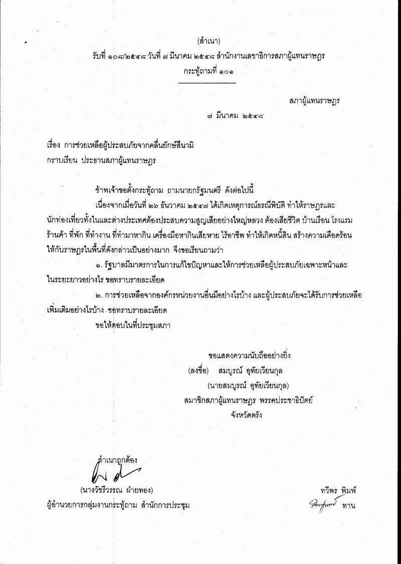 ระเบียบวาระการประชุมสภาผู้แทนราษฎร > ชุดที่ 22 > ปีที่ 1 > สมัยสามัญนิติบัญญัติ > ครั้งที่ 11 (บ่าย) > (1) กระทู้ถาม |