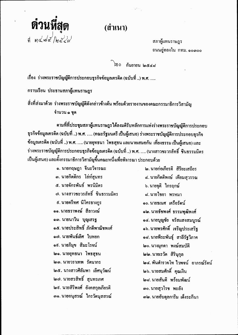 ร่างพระราชบัญญัติการประกอบธุรกิจข้อมูลเครดิต (ฉบับที่ ..) พ.ศ. .... |