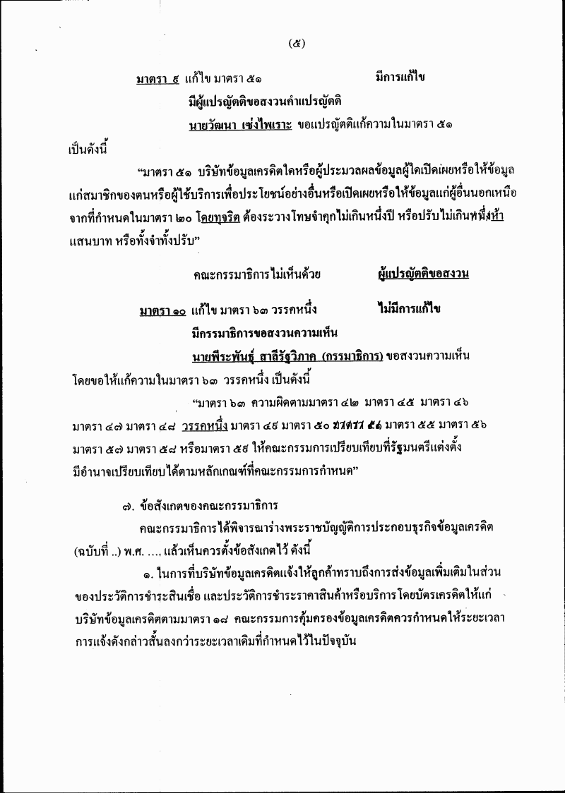 ชื่อเอกสาร :   ร่างพระราชบัญญัติการประกอบธุรกิจข้อมูลเครดิต (ฉบับที่ ..) พ.ศ. ....