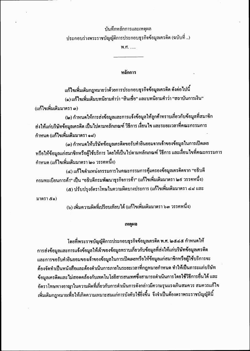 ร่างพระราชบัญญัติการประกอบธุรกิจข้อมูลเครดิต (ฉบับที่ ..) พ.ศ. .... |