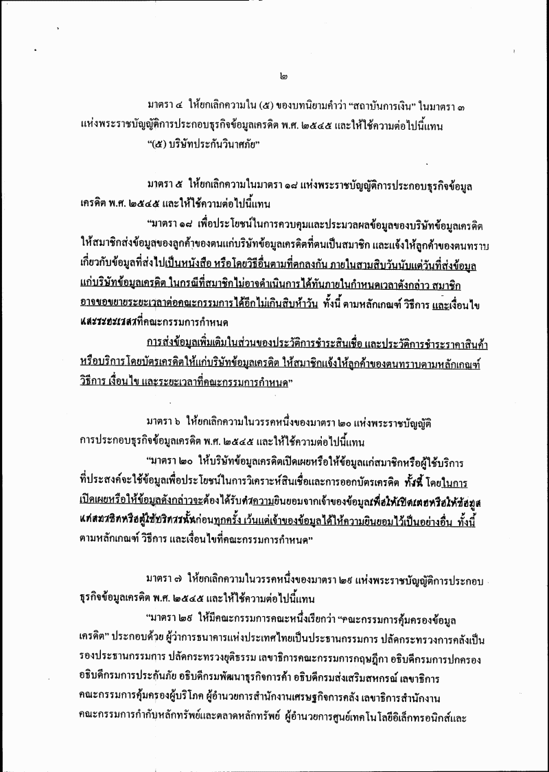 • ร่างพระราชบัญญัติการประกอบธุรกิจข้อมูลเครดิต (ฉบับที่ ..) พ.ศ. ....