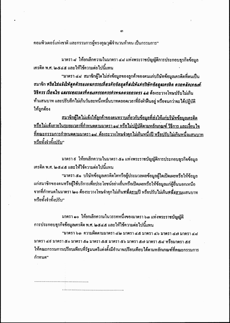 • ร่างพระราชบัญญัติการประกอบธุรกิจข้อมูลเครดิต (ฉบับที่ ..) พ.ศ. ....