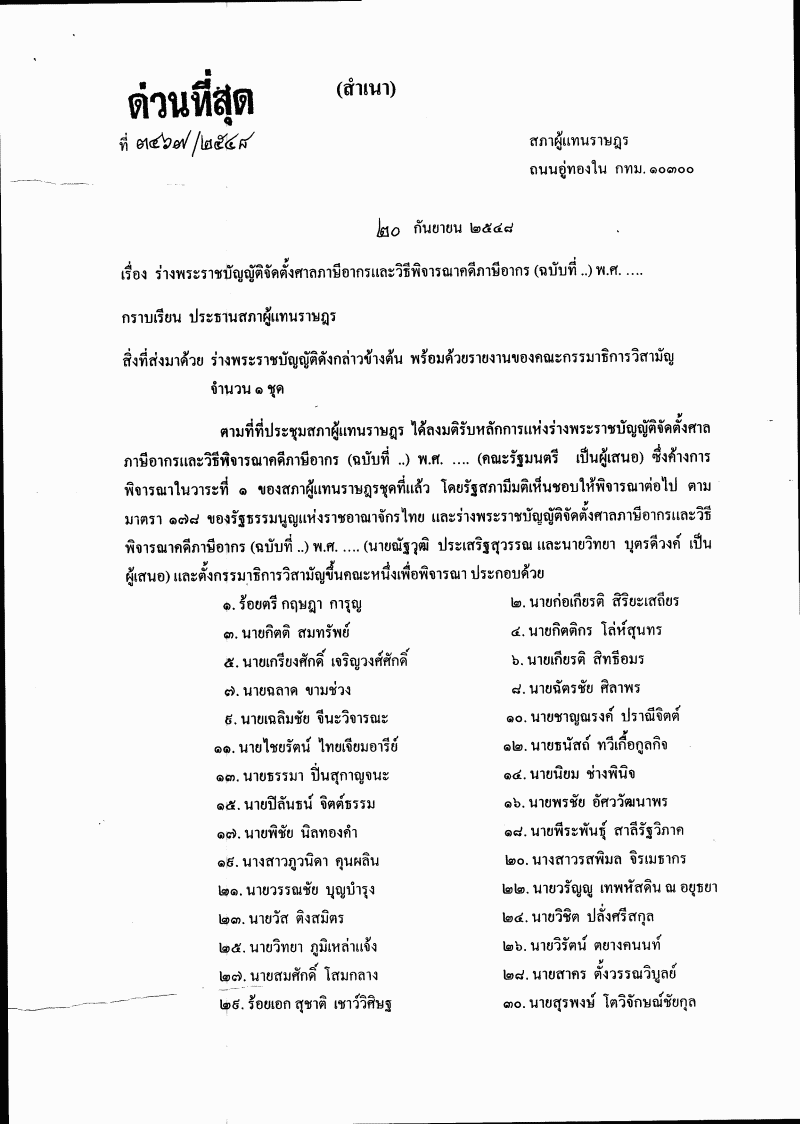 • ร่างพระราชบัญญัติจัดตั้งศาลภาษีอากรและวิธีพิจารณาคดีภาษีอากร (ฉบับที่ ..) พ.ศ. ....