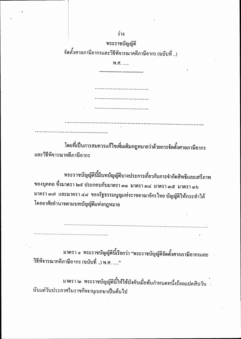 • ร่างพระราชบัญญัติจัดตั้งศาลภาษีอากรและวิธีพิจารณาคดีภาษีอากร (ฉบับที่ ..) พ.ศ. ....