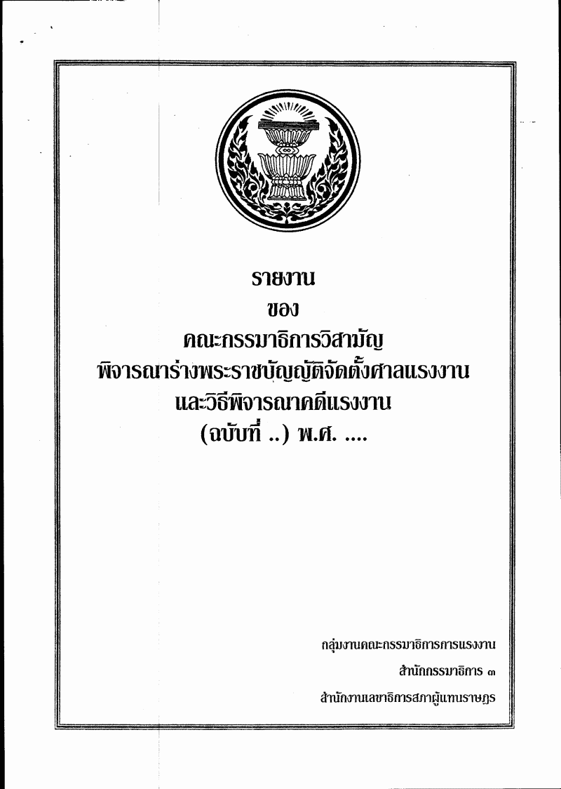 ชื่อเอกสาร :   ร่างพระราชบัญญัติจัดตั้งศาลแรงงานและวิธีพิจารณาคดีแรงงาน (ฉบับที่ ..) พ.ศ. ....