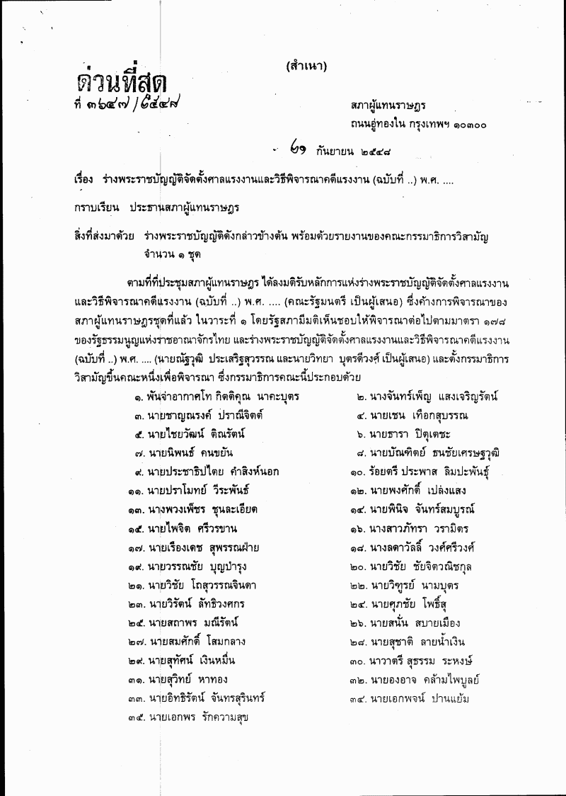 • ร่างพระราชบัญญัติจัดตั้งศาลแรงงานและวิธีพิจารณาคดีแรงงาน (ฉบับที่ ..) พ.ศ. ....
