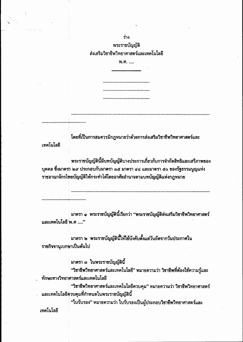 ชื่อเอกสาร :   ร่างพระราชบัญญัติส่งเสริมวิชาชีพวิทยาศาสตร์และเทคโนโลยี พ.ศ. ....