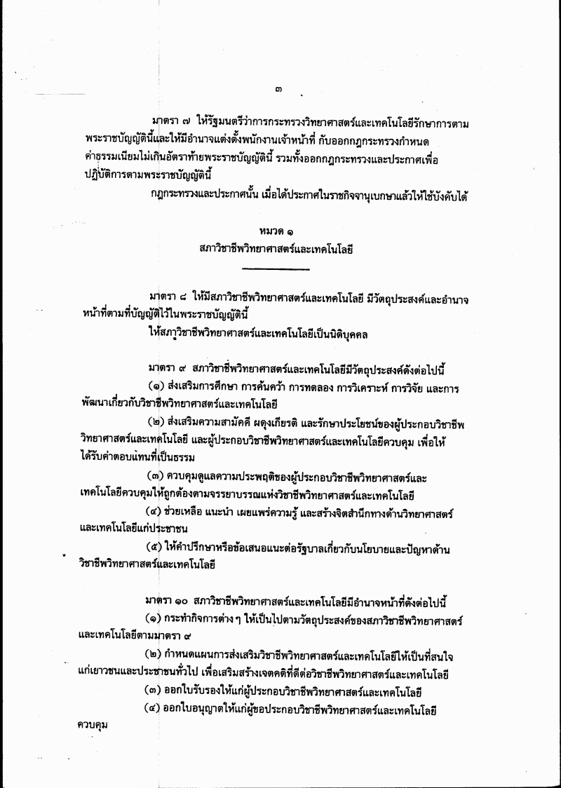 ชื่อเอกสาร :   ร่างพระราชบัญญัติส่งเสริมวิชาชีพวิทยาศาสตร์และเทคโนโลยี พ.ศ. ....