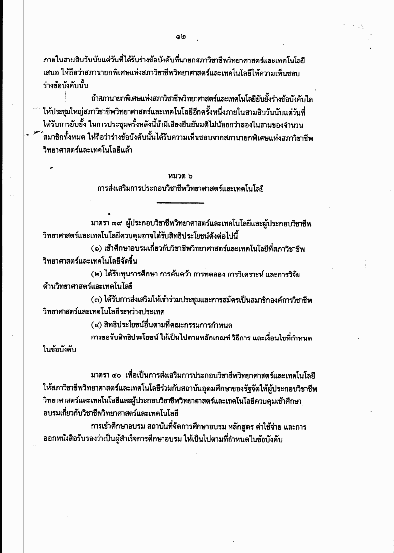 ชื่อเอกสาร :   ร่างพระราชบัญญัติส่งเสริมวิชาชีพวิทยาศาสตร์และเทคโนโลยี พ.ศ. ....
