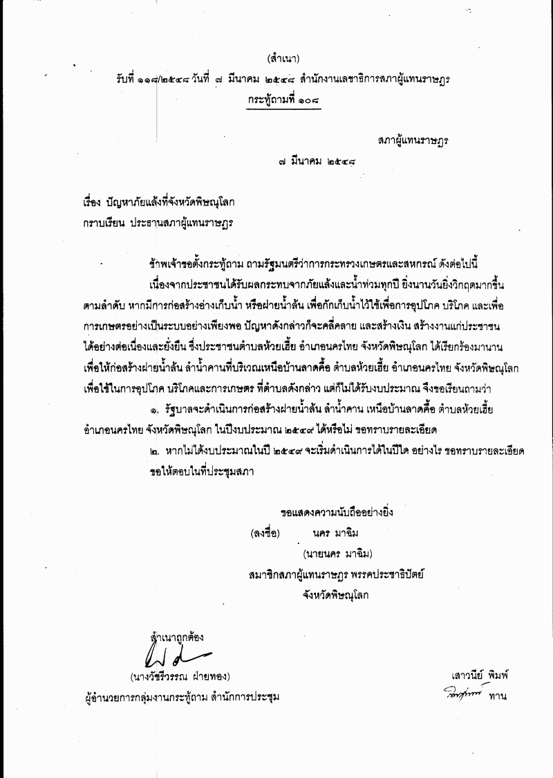 ชื่อเอกสาร : ปัญหาภัยแล้งที่จังหวัดพิษณุโลก