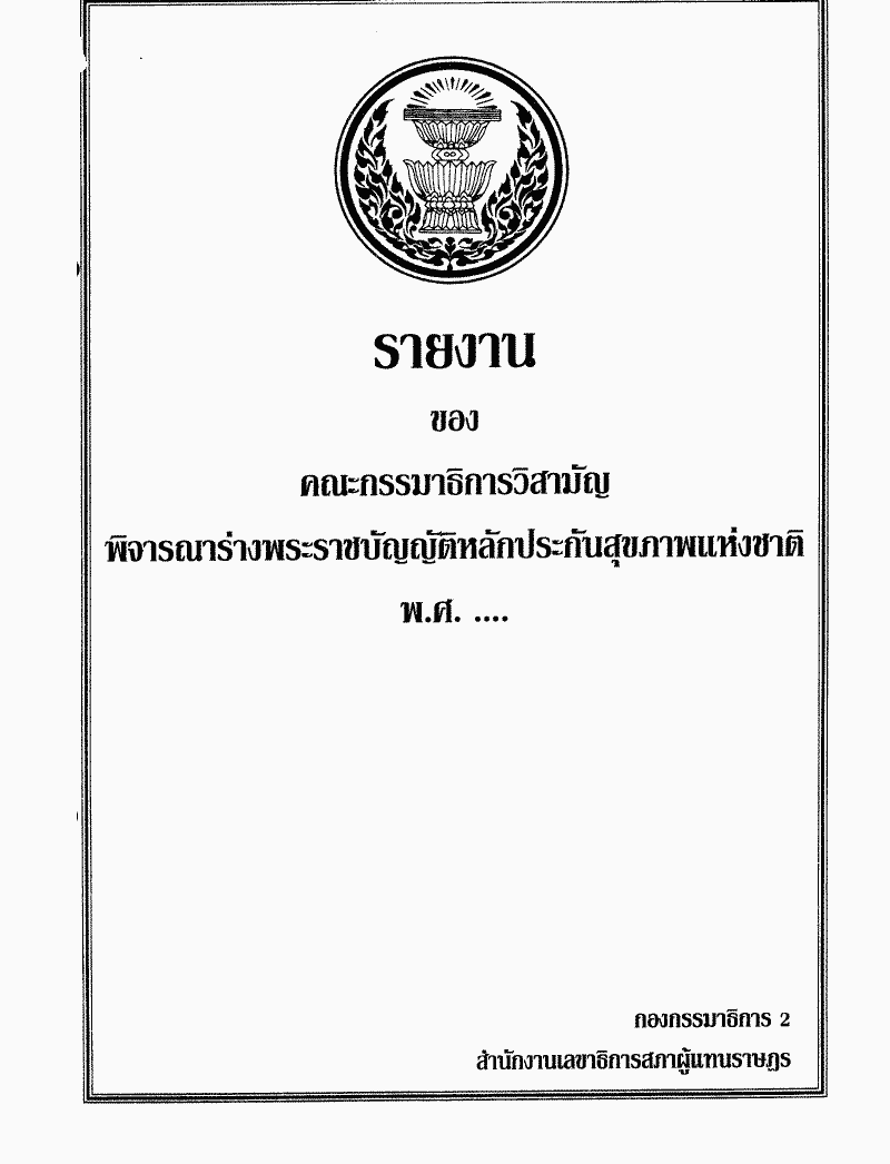 ร่างพระราชบัญญัติหลักประกันสุขภาพแห่งชาติ พ.ศ. .... ซึ่งคณะกรรมาธิการวิสามัญพิจารณาเสร็จแล้ว