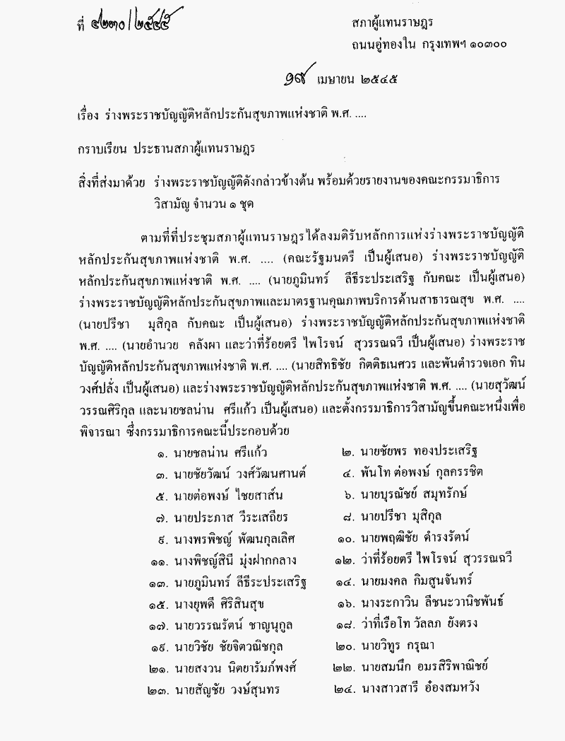 ร่างพระราชบัญญัติหลักประกันสุขภาพแห่งชาติ พ.ศ. .... ซึ่งคณะกรรมาธิการวิสามัญพิจารณาเสร็จแล้ว
