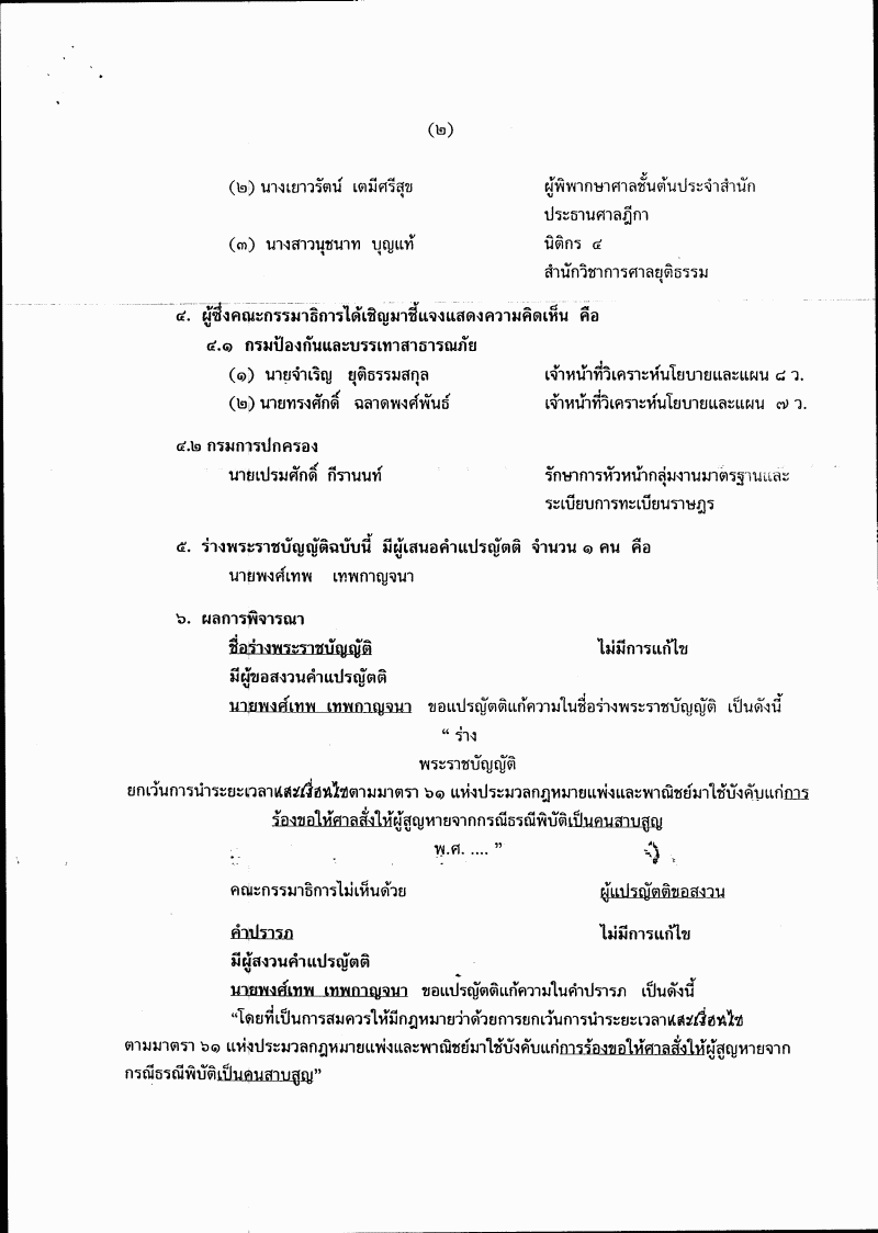 • ร่างพระราชบัญญัติยกเว้นการนำระยะเวลาเงื่อนไขตามมาตรา ๖๑