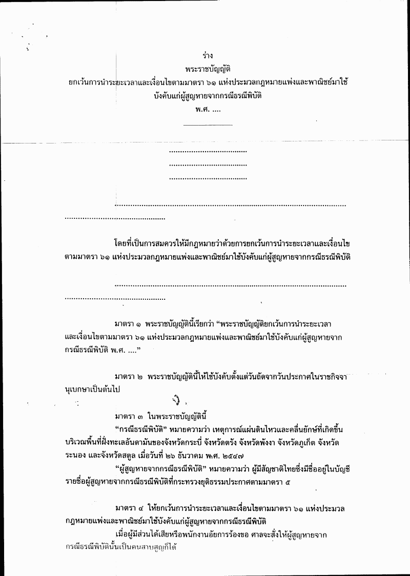 ชื่อเอกสาร :   ร่างพระราชบัญญัติยกเว้นการนำระยะเวลาเงื่อนไขตามมาตรา ๖๑