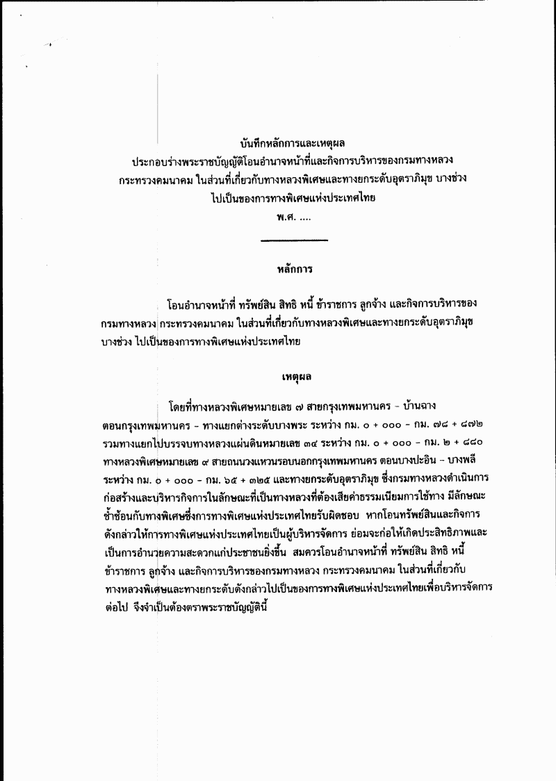 ชื่อเอกสาร :   ร่างพระราชบัญญัติฯ ในส่วนที่เกี่ยวกับทางหลวงพิเศษและทางยกระดับอุตราภิมุข บางช่วง