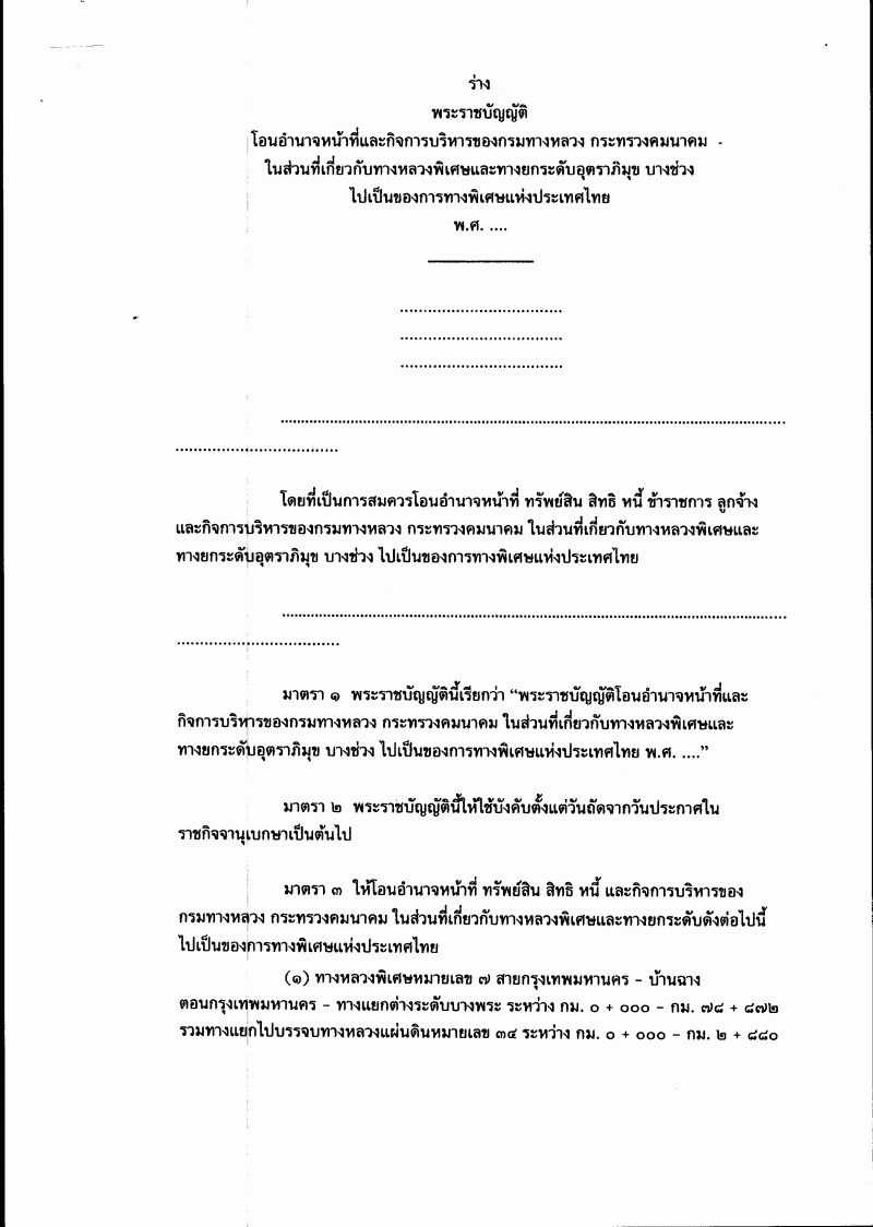 ชื่อเอกสาร :   ร่างพระราชบัญญัติฯ ในส่วนที่เกี่ยวกับทางหลวงพิเศษและทางยกระดับอุตราภิมุข บางช่วง