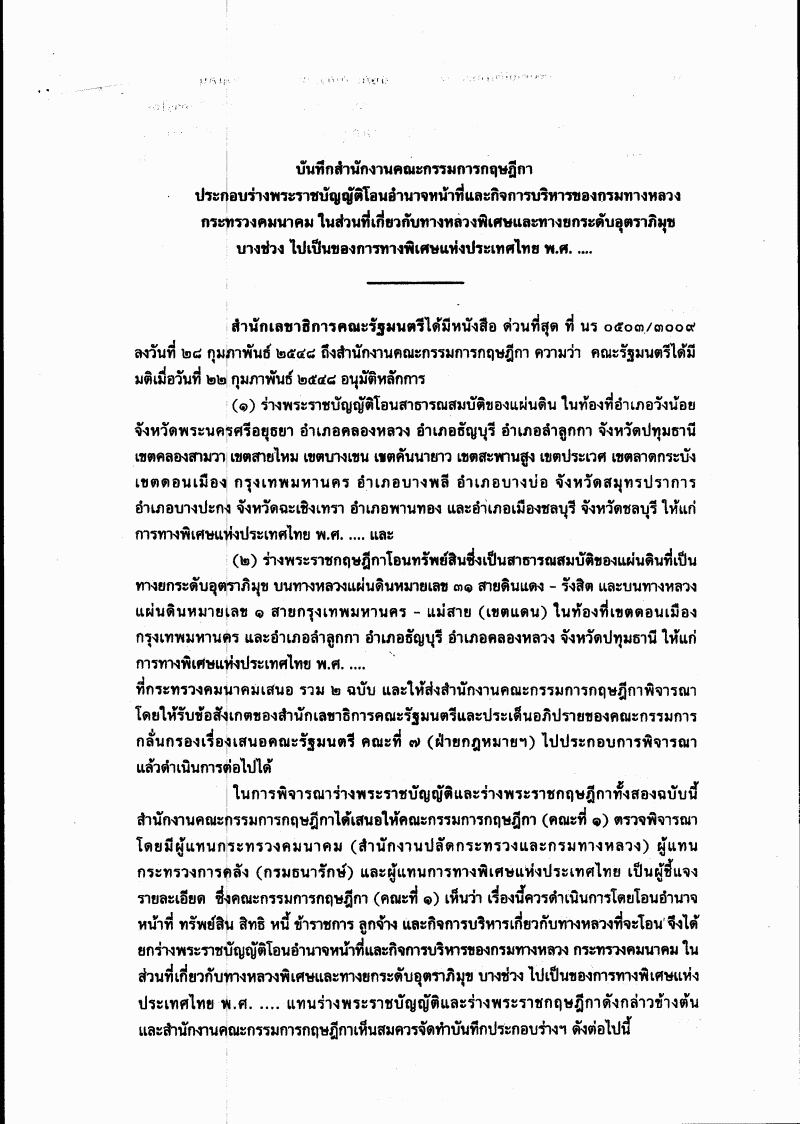 ชื่อเอกสาร :   ร่างพระราชบัญญัติฯ ในส่วนที่เกี่ยวกับทางหลวงพิเศษและทางยกระดับอุตราภิมุข บางช่วง