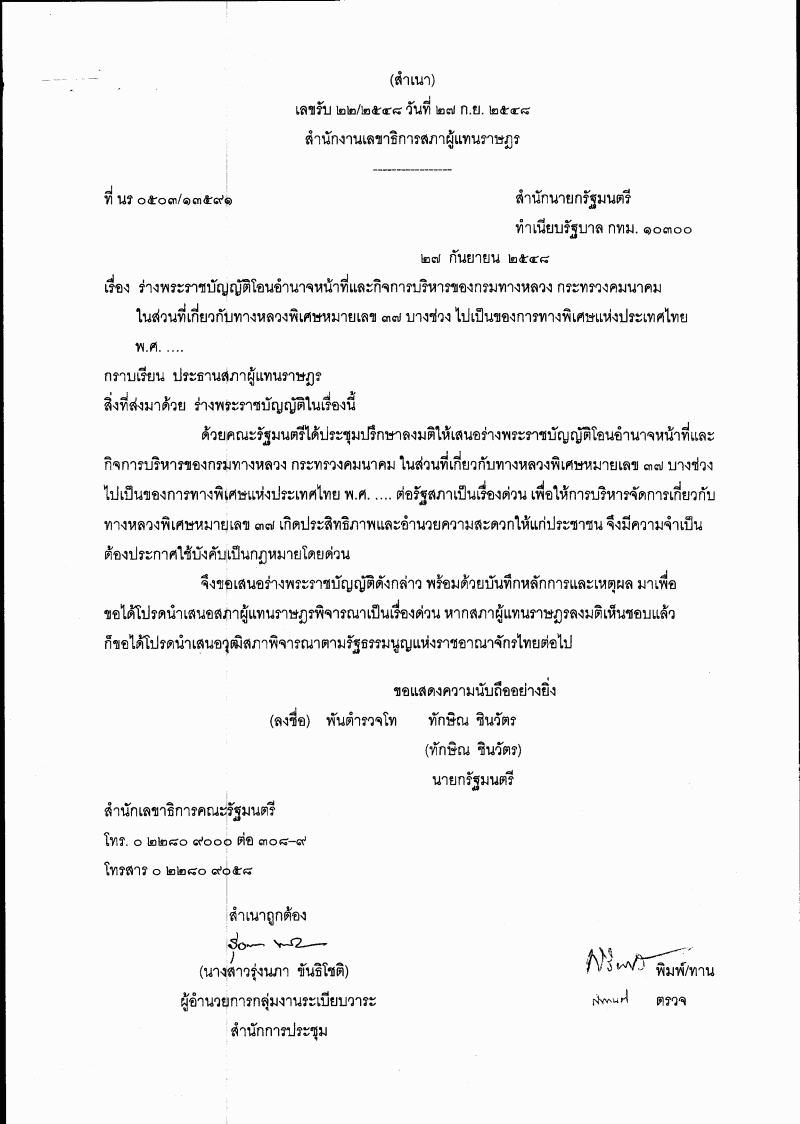 ชื่อเอกสาร :   ร่างพระราชบัญญัติฯ ในส่วนที่เกี่ยวข้องกับทางหลวงพิเศษ ๓๗ บางช่วง
