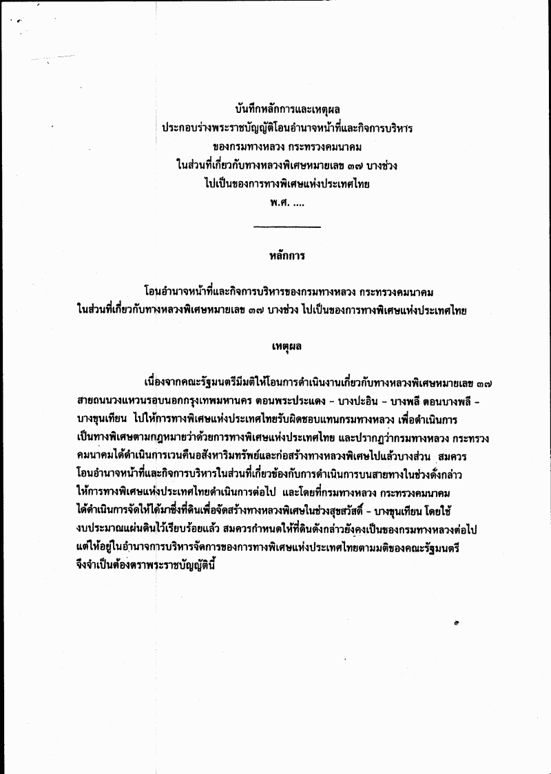 ชื่อเอกสาร : ร่างพระราชบัญญัติฯ ในส่วนที่เกี่ยวข้องกับทางหลวงพิเศษ ๓๗ บางช่วง