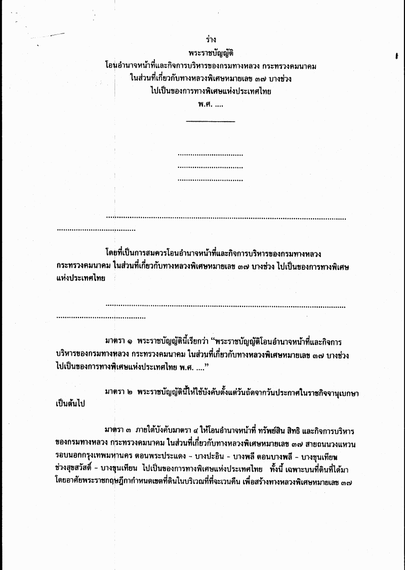 ชื่อเอกสาร :   ร่างพระราชบัญญัติฯ ในส่วนที่เกี่ยวข้องกับทางหลวงพิเศษ ๓๗ บางช่วง