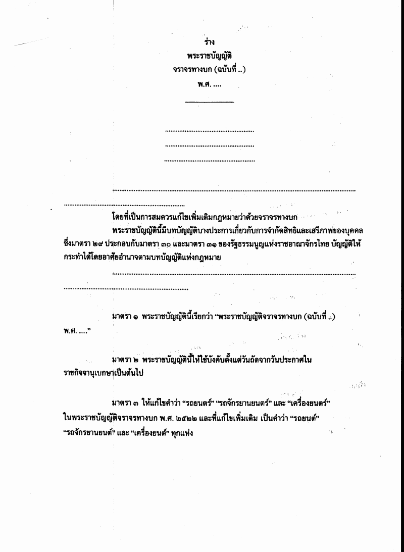 • ร่างพระราชบัญญัติจราจรทางบก (ฉบับที่ ..) พ.ศ. ....