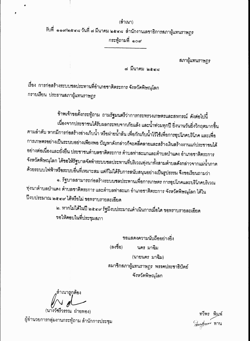 ชื่อเอกสาร : การก่อสร้างระบบชลประทานที่อำเภอชาติตระการ จังหวัดพิษณุโลก