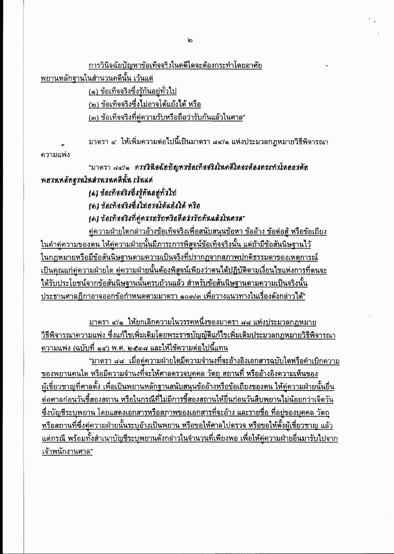 • ร่างพระราชบัญญัติแก้ไขเพิ่มเติมประมวลกฎหมายวิธีพิจารณาความแพ่ง (ฉบับที่ ..) พ.ศ. .... (พยานหลักฐาน)