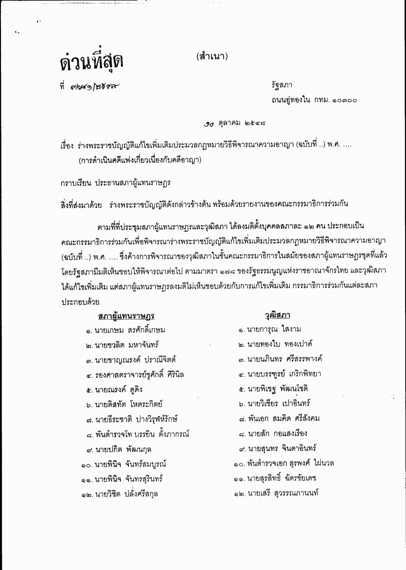 ร่างพระราชบัญญัติแก้ไขเพิ่มเติมประมวลกฎหมายวิธีพิจารณาความอาญา (ฉบับที่ ..) พ.ศ. ... (การดำเนินคดีแพ่งเกี่ยวเนื่องกับคดีอาญา) |