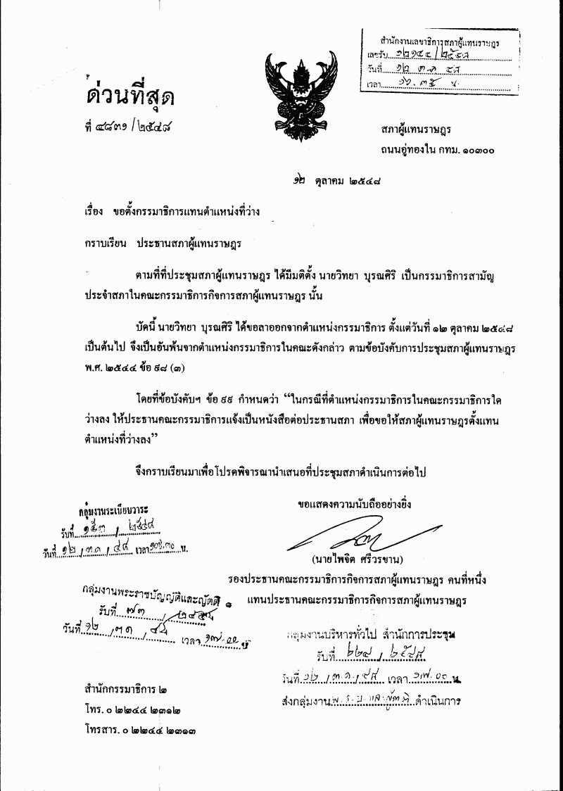 ชื่อเอกสาร : ตั้งซ่อมกรรมาธิการสามัญประจำสภา ในคณะกรรมาธิการกิจการสภาผู้แทนราษฎร