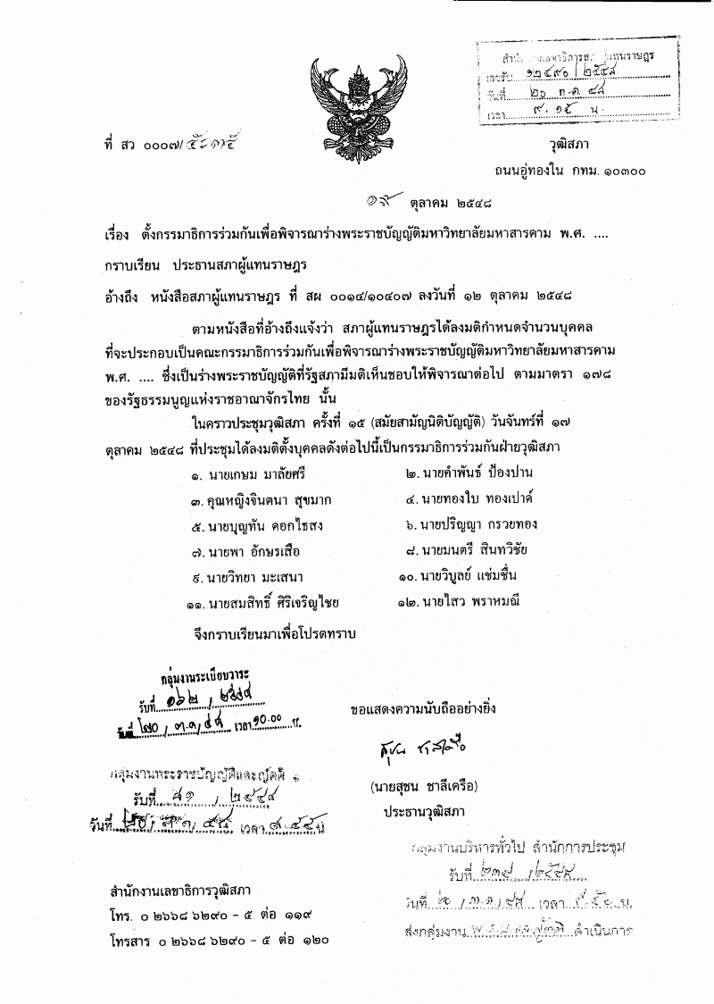ชื่อเอกสาร : รับทราบร่างพระราชบัญญัติมหาวิทยาลัยมหาสารคาม พ.ศ. ....