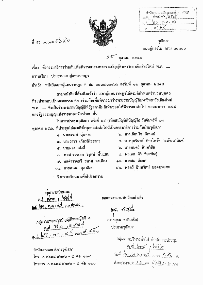 รับทราบร่างพระราชบัญญัติมหาวิทยาลัยเชียงใหม่ |