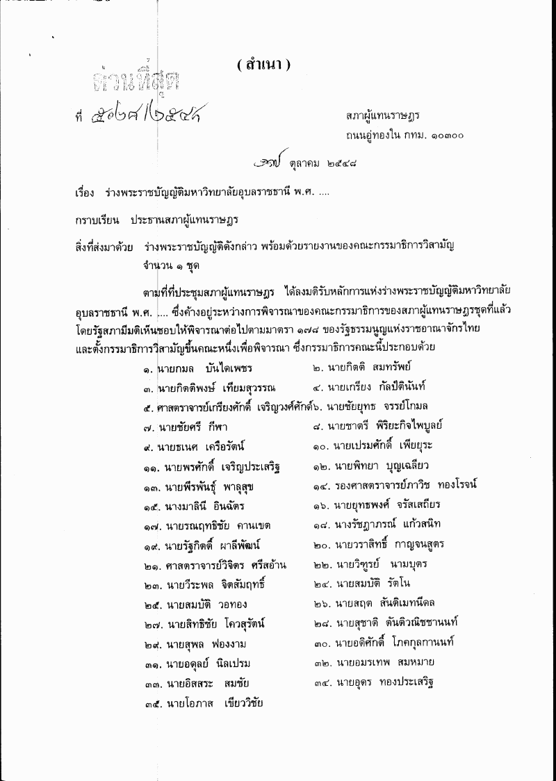 ร่างพระราชบัญญัติมหาวิทยาลัยอุบลราชธานี พ.ศ. ....
