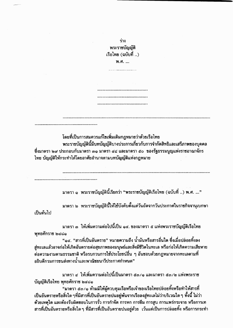 ชื่อเอกสาร : ร่างพระราชบัญญัติเรือไทย (ฉบับที่ ..) พ.ศ. ....