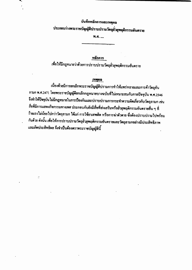 ชื่อเอกสาร :   ร่างพระราชบัญญัติปราบปรามวัตถุยั่วยุพฤติกรรมอันตราย พ.ศ. ....