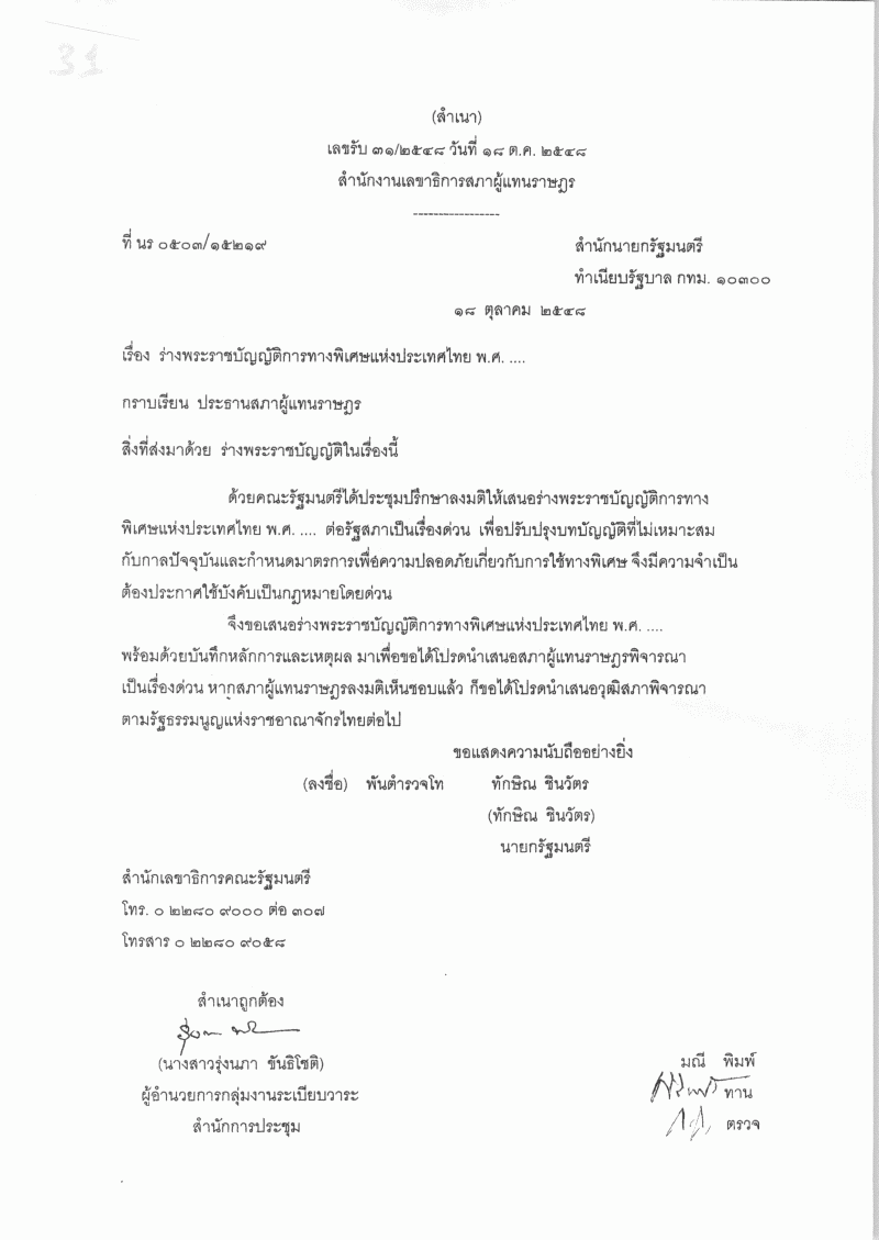 ชื่อเอกสาร :   ร่างพระราชบัญญัติการทางพิเศษแห่งประเทศไทย พ.ศ. .... (คณะรัฐมนตรีเป็นผู้เสนอ)