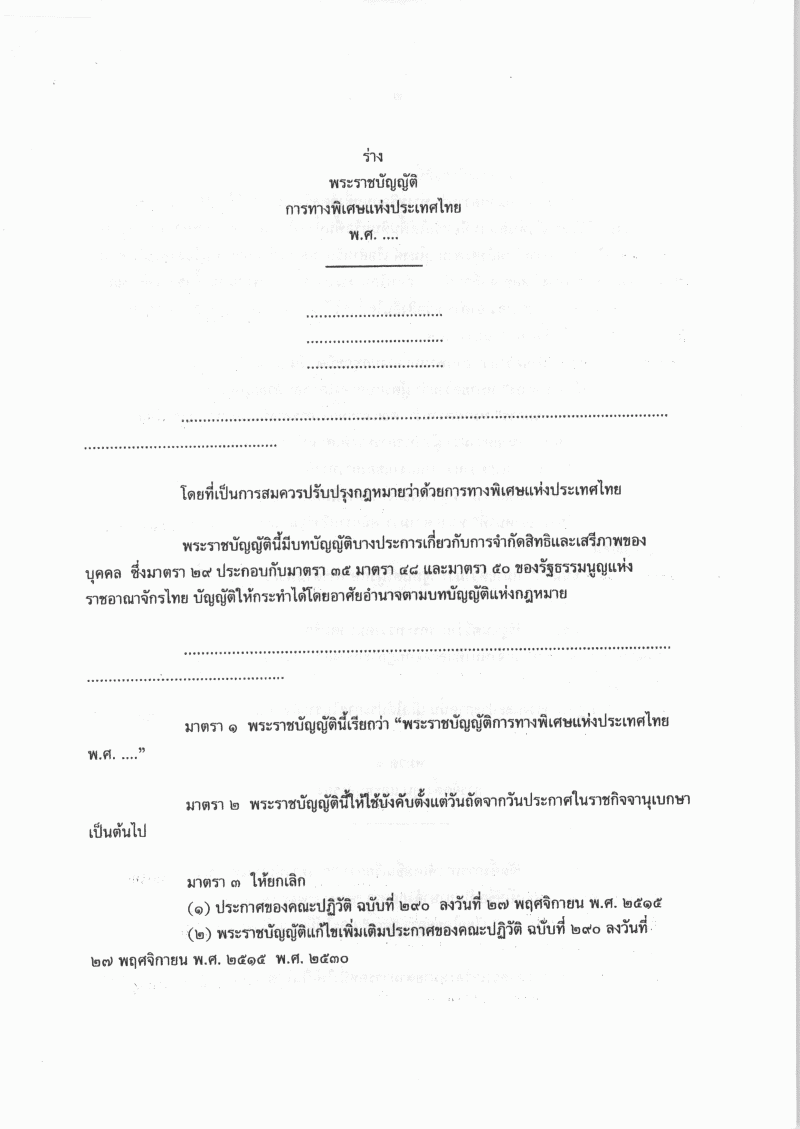 ชื่อเอกสาร :   ร่างพระราชบัญญัติการทางพิเศษแห่งประเทศไทย พ.ศ. .... (คณะรัฐมนตรีเป็นผู้เสนอ)