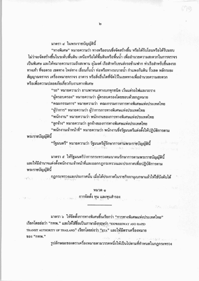 ชื่อเอกสาร :   ร่างพระราชบัญญัติการทางพิเศษแห่งประเทศไทย พ.ศ. .... (คณะรัฐมนตรีเป็นผู้เสนอ)