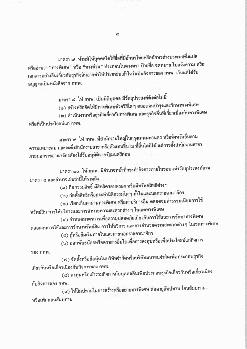 ชื่อเอกสาร :   ร่างพระราชบัญญัติการทางพิเศษแห่งประเทศไทย พ.ศ. .... (คณะรัฐมนตรีเป็นผู้เสนอ)