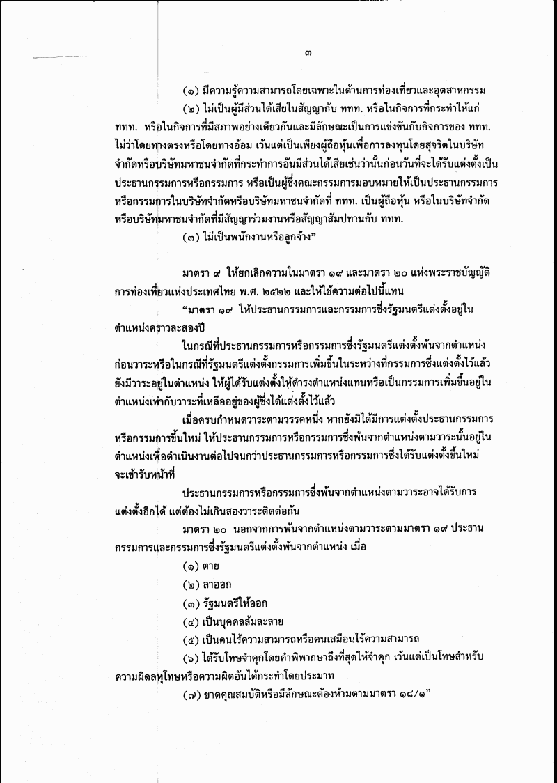 ชื่อเอกสาร :   ร่างพระราชบัญญัติการท่องเที่ยวแห่งประเทศไทย (ฉบับที่ ..) พ.ศ. ....