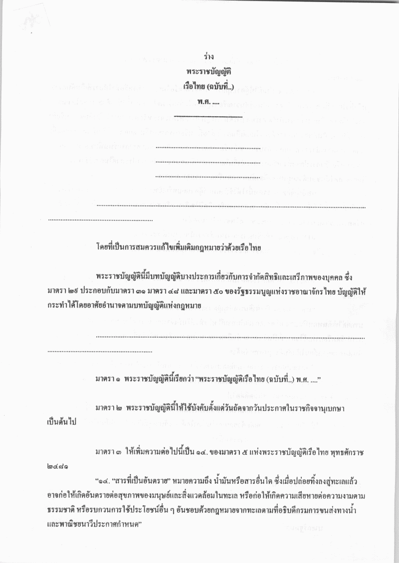 • ร่างพระราชบัญญัติเรือไทย (ฉบับที่ ..) พ.ศ. ....