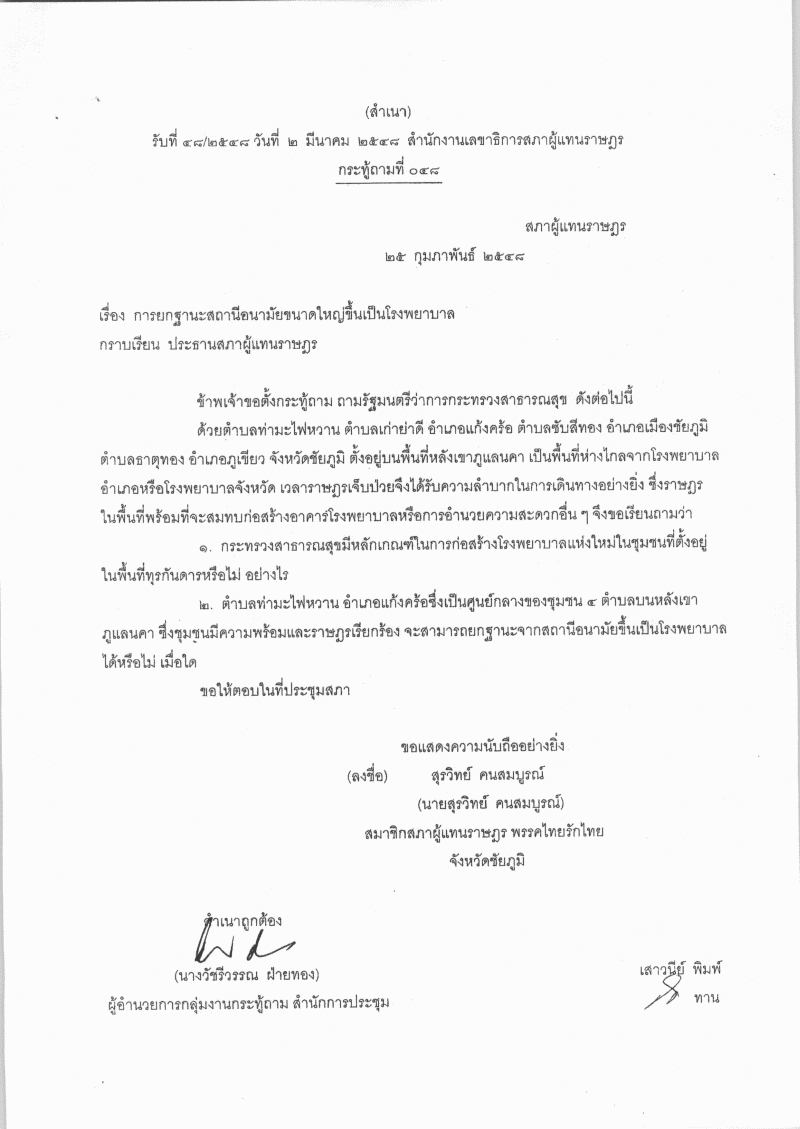 ชื่อเอกสาร : การยกฐานะสถานีอนามัยขนาดใหญ่ขึ้นเป็นโรงพยาบาล