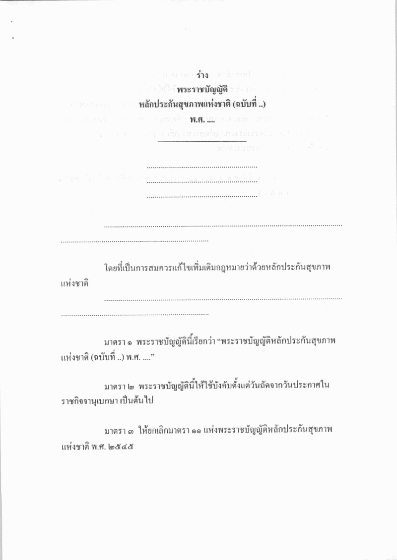 ชื่อเอกสาร :   ร่างพระราชบัญญัติหลักประกันสุขภาพแห่งชาติ (ฉบับที่ ..) พ.ศ. ....