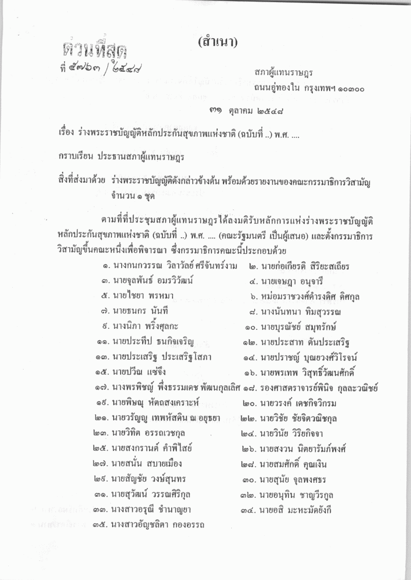 ชื่อเอกสาร :   ร่างพระราชบัญญัติหลักประกันสุขภาพแห่งชาติ (ฉบับที่ ..) พ.ศ. ....