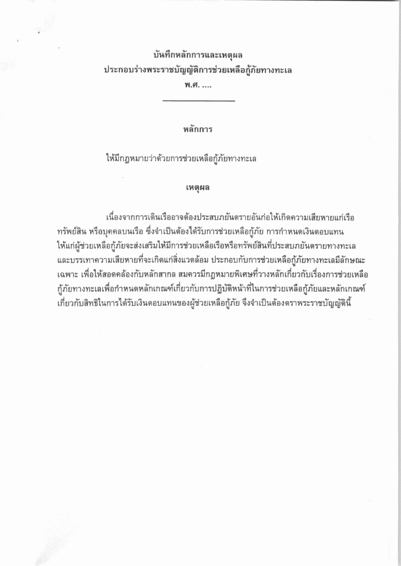 ชื่อเอกสาร :   ร่างพระราชบัญญัติการช่วยเหลือกู้ภัยทางทะเล พ.ศ. ....