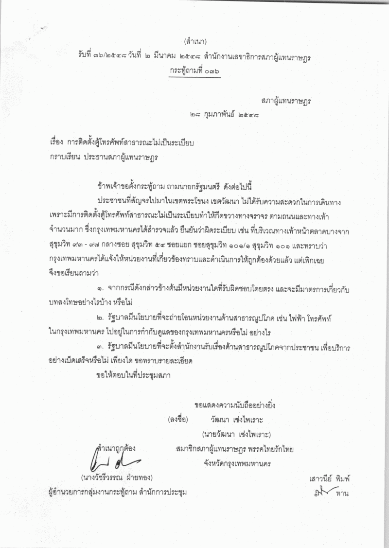 ชื่อเอกสาร : การติดตั้งตู้โทรศัพท์สาธารณะไม่เป็นระเบียบ