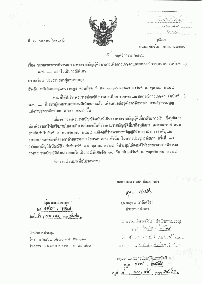 ชื่อเอกสาร : รับทราบร่างพระราชบัญญัติธนาคารเพื่อการเกษตรและสหกรณ์