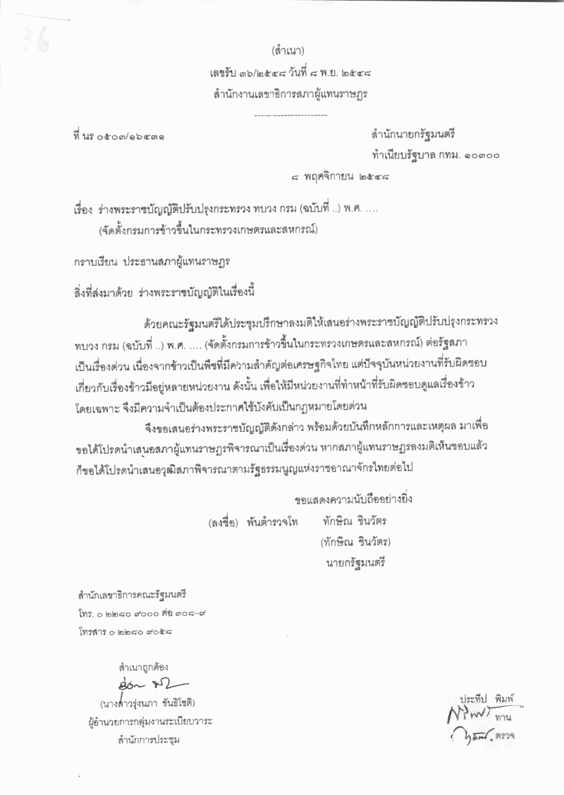 • ร่างพระราชบัญญัติปรับปรุงกระทรวง ทบวง กรม (ฉบับที่ ..) พ.ศ. ....