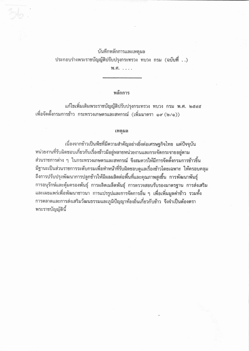 ชื่อเอกสาร : ร่างพระราชบัญญัติปรับปรุงกระทรวง ทบวง กรม (ฉบับที่ ..) พ.ศ. ....
